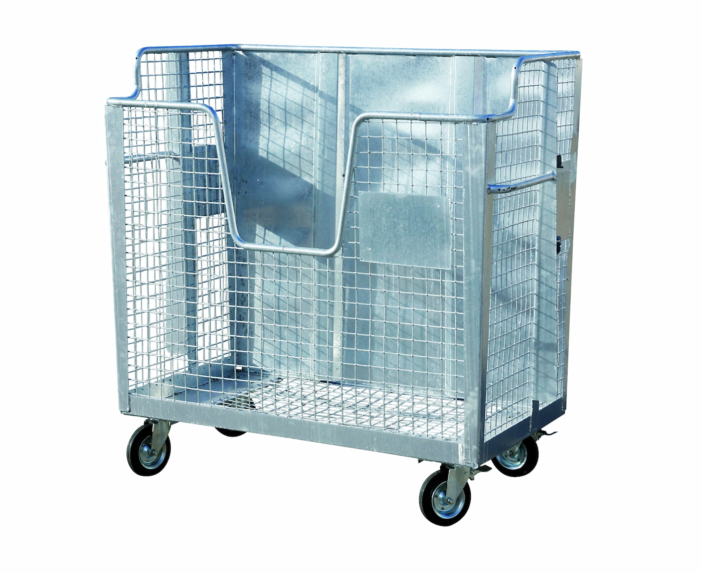 Robuuste stalen open gaascontainer van 2000 liter met een dichte bodem met 9 gaten en met 4 wielen waarvan standaard 2 geremd, speciaal geschikt voor papier & karton en kunststof folies of vepakkingen. Uitsluitend geschikt voor Geesink opname. Diverse soorten wielen leverbaar